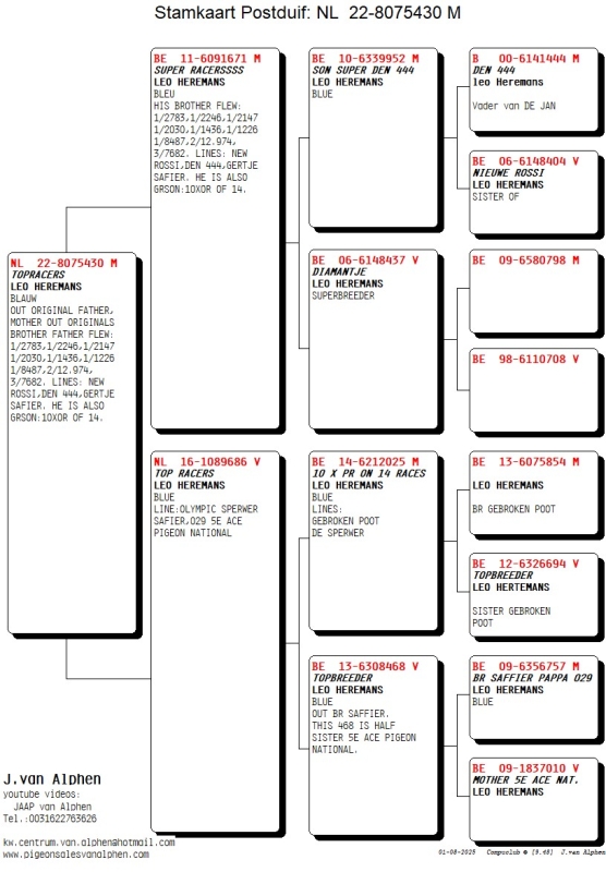 22-8075430 LEO HEREMANS COCK, OUT ORIGINAL FATHER, MOTHER OUT ORIGINALS. OUT ORIGINAL FATHER, MOTHER OUT ORIGINALS BROTHER FATHER FLEW: 1/2783,1/2246,1/2147 1/2030,1/1436,1/1226 1/8487,2/12.974, 3/7682. LINES: NEW ROSSI,DEN 444,GERTJE SAFIER. HE IS ALSO GRSON:10X0R OF 14. FANTASTIC COCK!!!