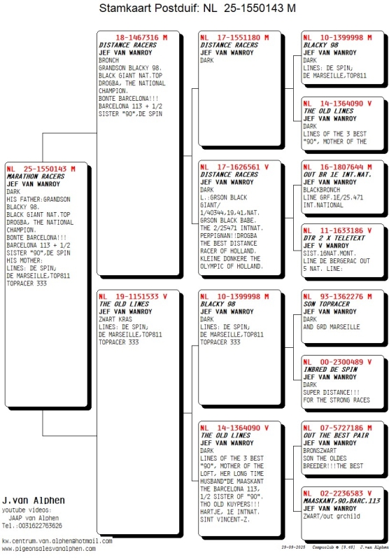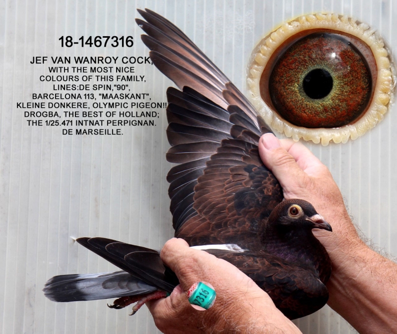25-1550143 JEF VAN WANROY COCK HIS FATHER:GRANDSON BLACKY 98. BLACK GIANT NAT.TOP DROGBA, THE NATIONAL CHAMPION. BONTE BARCELONA!!! BARCELONA 113 = 1/2 SISTER "90",DE SPIN HIS MOTHER: LINES: DE SPIN; DE MARSEILLE,TOP 811 TOPRACER 333 225 euro