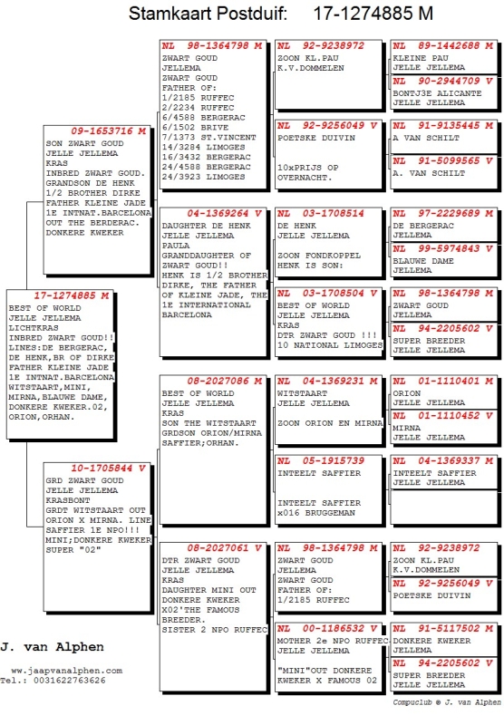 17-1274885 JELLE JELLEMA COCK, GRSON ZWART GOUD INBRED ZWART GOUD!! LINES:DE BERGERAC, DE HENK,BR OF DIRKE FATHER KLEINE JADE 1E INTNAT.BARCELONA WITSTAART,MINI, MIRNA,BLAUWE DAME, DONKERE KWEKER.02, ORION,ORHAN,5 NAT. BARCA!!