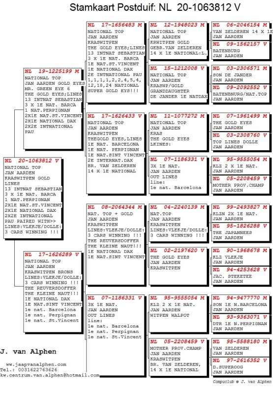 20-1063812 JAN AARDEN, THE GOLD EYES, NATIONAL TOP HEN LINES 13 INTNAT SEBASTIAN 3 X 1E NAT. BARCA 1 NAT.PERPIGNAN 2X1E NAT.ST.VINCENT 2X1E NATIONAL DAX 2X2E INTNATIONAL PAU PAIRED WITH>> LINES:VLEKJE/DOLLE: 3 CARS WINNING !!! THE REUVERSDOFFER THE KLEINE NAUT!!! 1E NATIONAL DAX 1E NAT.SINT VINCENT 1e nat. Barcelona 1e nat. Perpignan 1e nat. St.Vincent