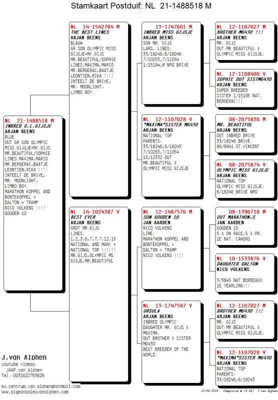 2021-1488518 ARJAN BEENS/JELLE JELLEMA COCK OUT GR SON OLYMPIC MISS GIJSJE+Mr.GIJS MR.BEAUTIFUL/SOPHIE LINES:MAXIMA,MARIO MR.BERGERAC,BAATJE LEONTIEN,RIKA !!!! INTEELT DE BRIVE; MR. MOONLIGHT, LIMBO BOY. MARATHON KOPPEL AND BONTEKOPPEL + DALTON + TRAMP NICO VOLKENS !!!! GOUDEN 10