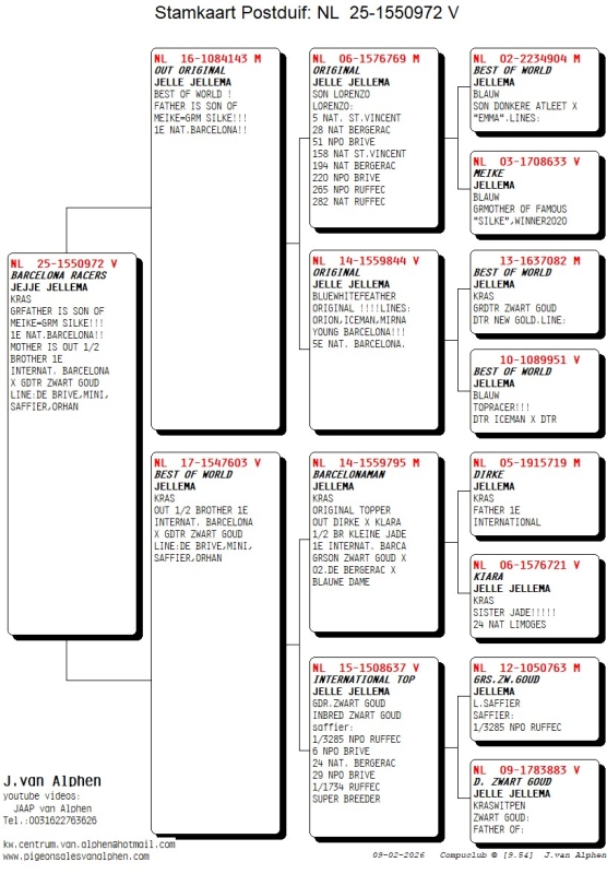 25-1550972 JELLE JELLEMA HEN GRFATHER IS SON OF MEIKE=GRM SILKE!!! 1E NAT.BARCELONA!! MOTHER IS OUT 1/2 BROTHER 1E INTERNAT. BARCELONA X GDTR ZWART GOUD LINE:DE BRIVE,MINI, SAFFIER,ORHAN