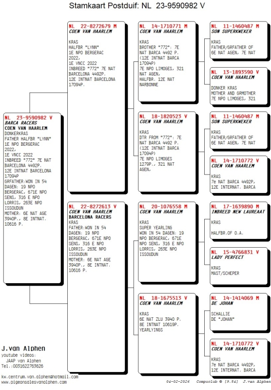 2025-1550992 JELLE JELLEMA HEN INBRED "BARCELOMAN" THE 1/2 BR KLEINE JADE, IE INTERN- NATIONAL BARCELONA. HER GRANDFATHER ORIGINAL TOPPER OUT DIRKE X KLARA 1/2 BR KLEINE JADE 1E INTERNAT. BARCA GRSON ZWART GOUD X 02.DE BERGERAC X BLAUWE DAME HER MOTHER IS DTR BARCELONAMAN, THE 1/2 BROTHER OF KLEINE JADE, 1E INT NAT. BARCELONA 2014 GRDDTR ZWART GOUD!! LINES:DE BERGERAC DIRKE,BLAUWE DAME, SAFFIER, KIARA.
